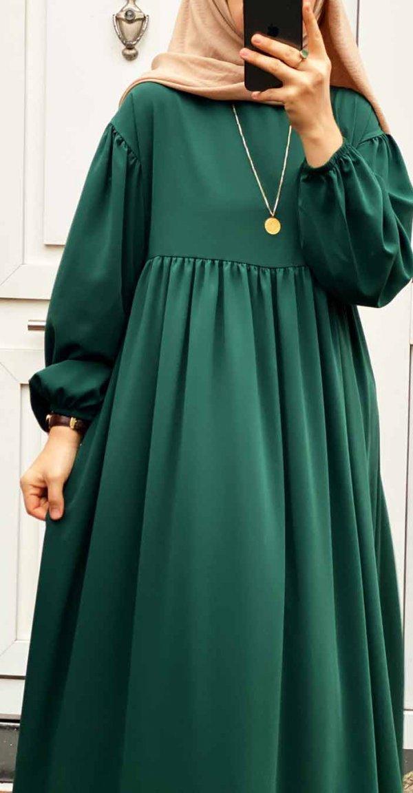 Fırfırlı Düğme Detay Elbise - Zümrüt