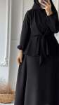 Belden Bağlamalı Etekli Takım - Siyah