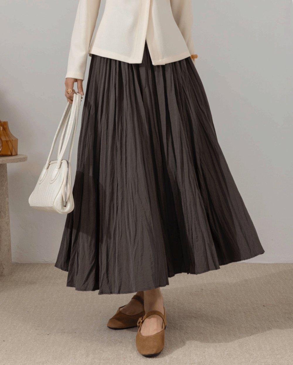 Beli Lastikli Kırışık Kumaş Etek - Antrasit