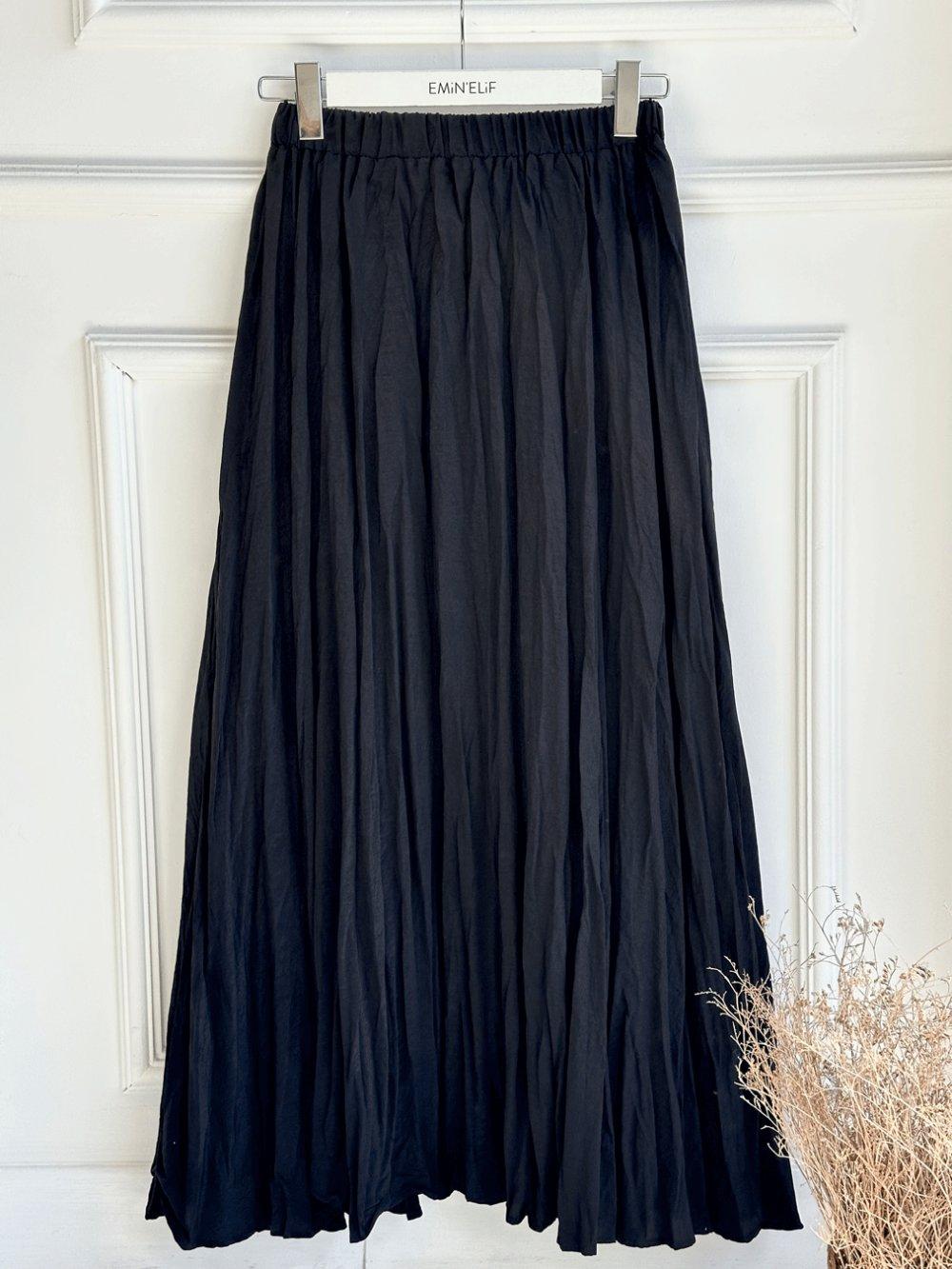 Beli Lastikli Kırışık Kumaş Etek - Siyah