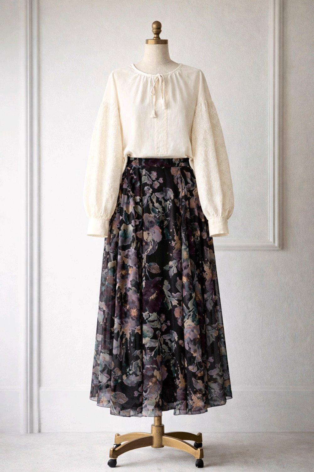 Çiçek Desenli Etek - Siyah