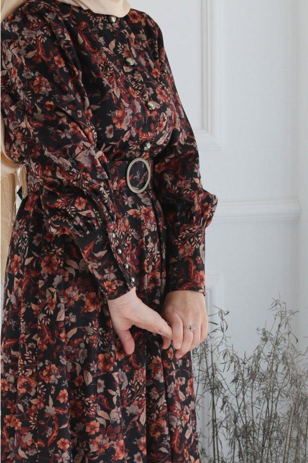 Belden Bağcıklı Basic Elbise - Kahverengi