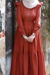 Dantel Detay Elbise - Kiremit
