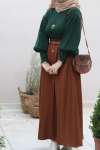 Beli Lastikli Kloş Etek -Koyu Kahverengi