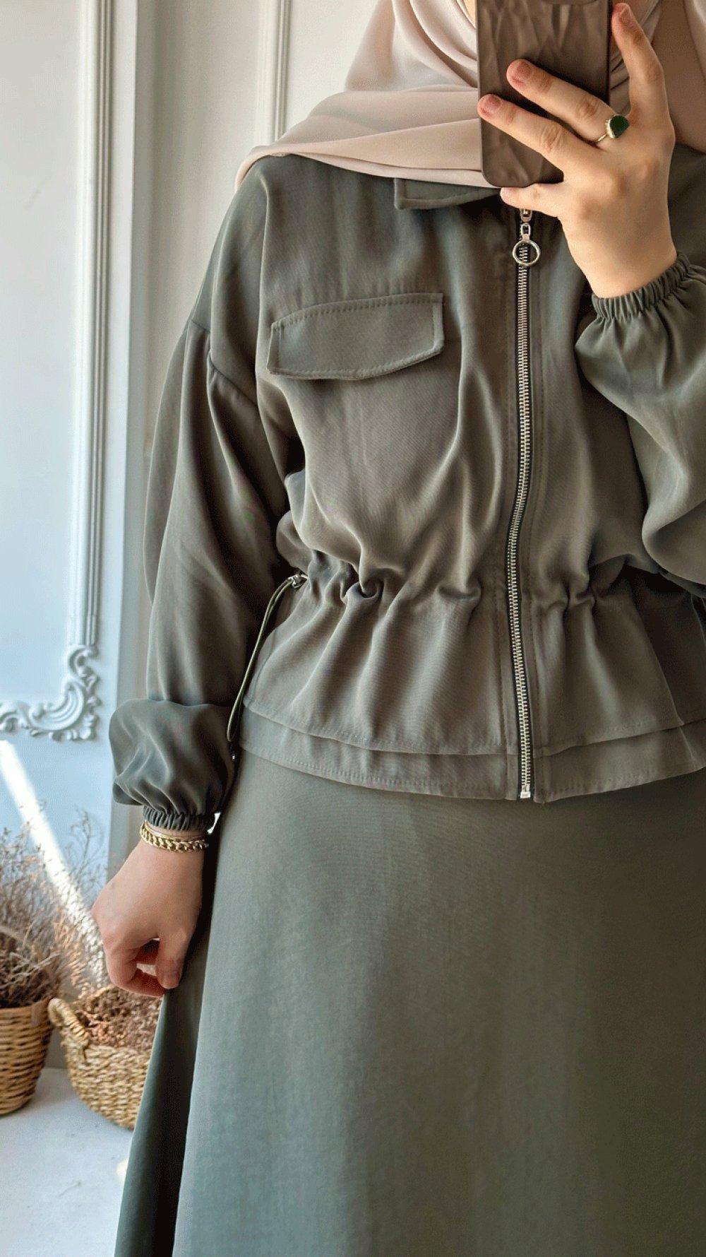 Fermuarlı Belden Ayarlanabilen Etekli Takım - Haki
