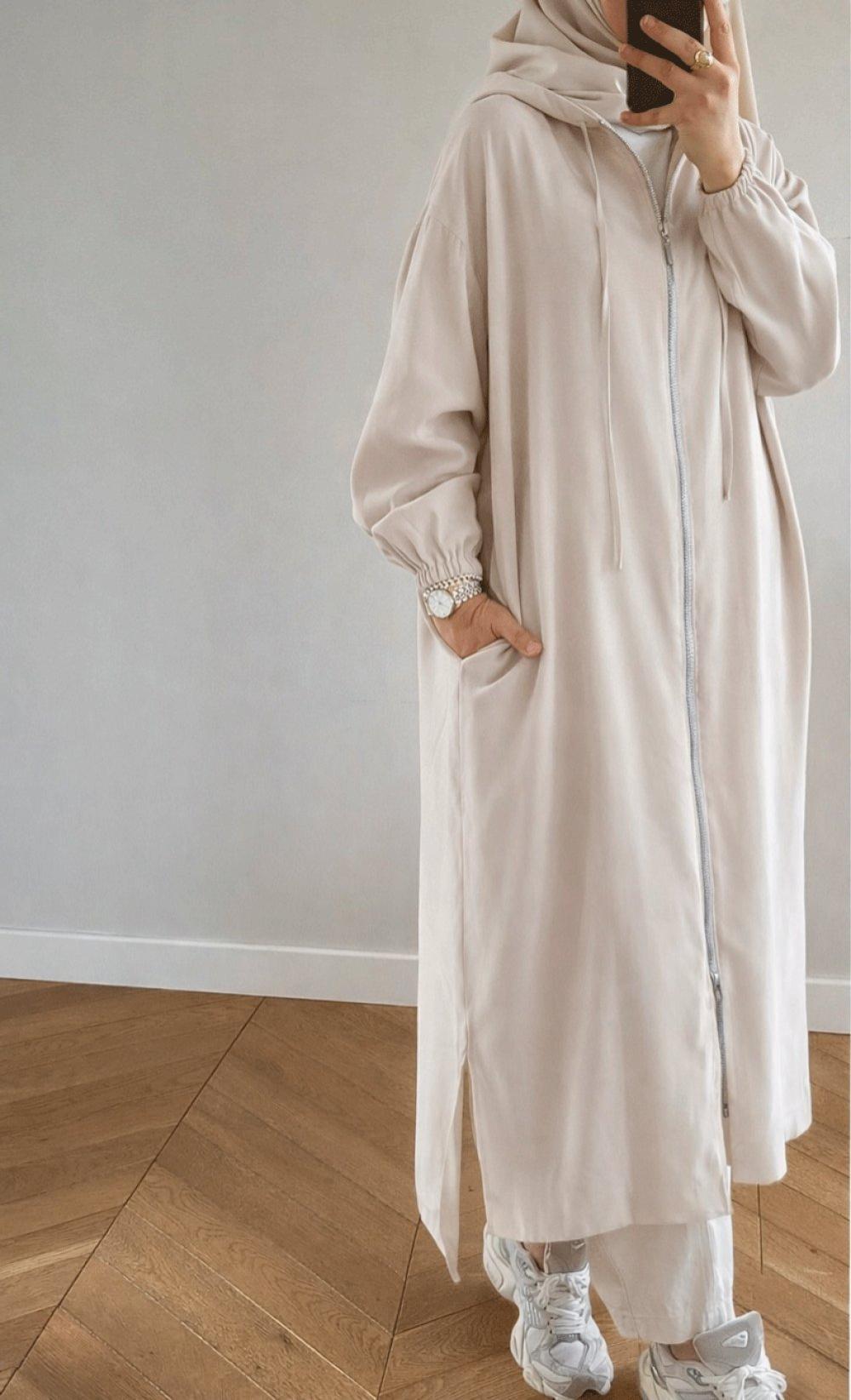 Fermuarlı Uzun Kap - Krem