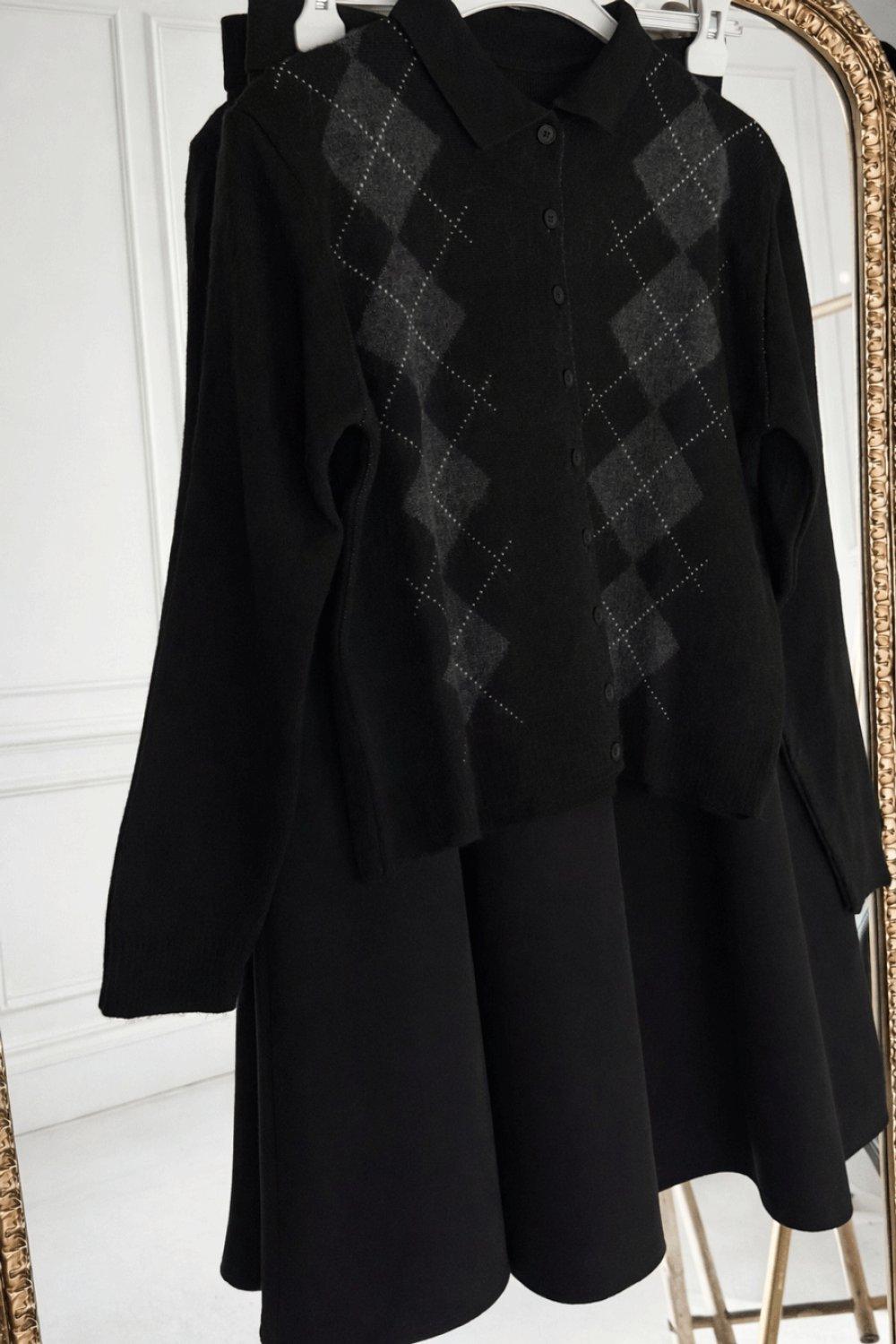 Gömlek Yaka Düğmeli Hırka - Siyah