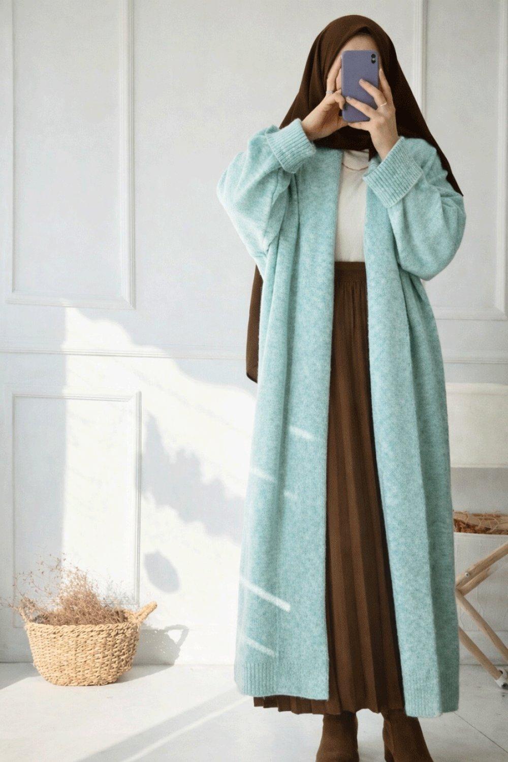 Kalın Uzun Hırka - Turkuaz