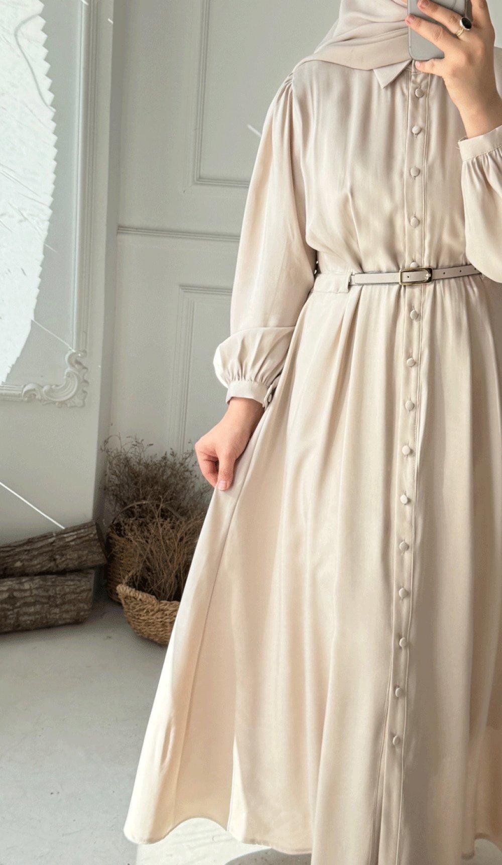 Kemer Detaylı Elbise - Krem