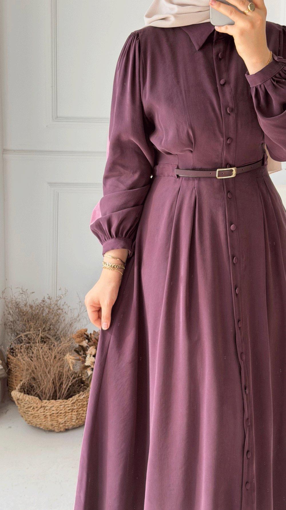 Kemer Detaylı Elbise - Mürdüm