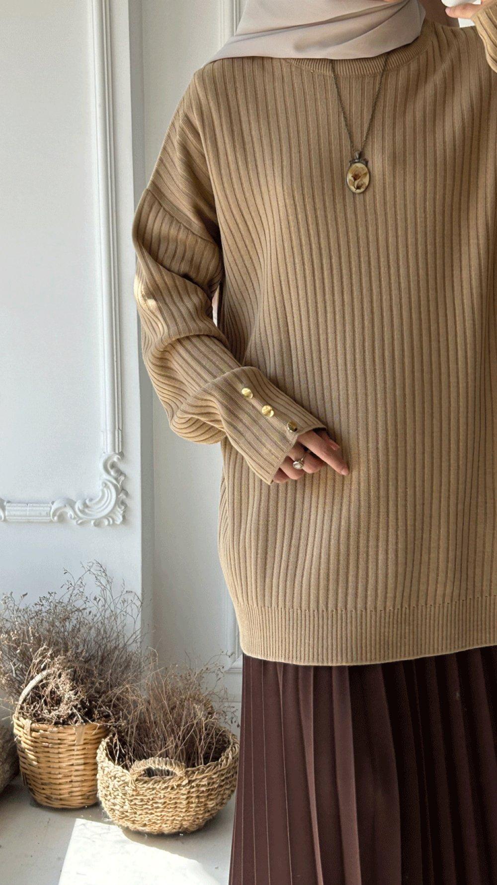 Kolu Düğme Detaylı Triko Tunik - Sütlü Kahve