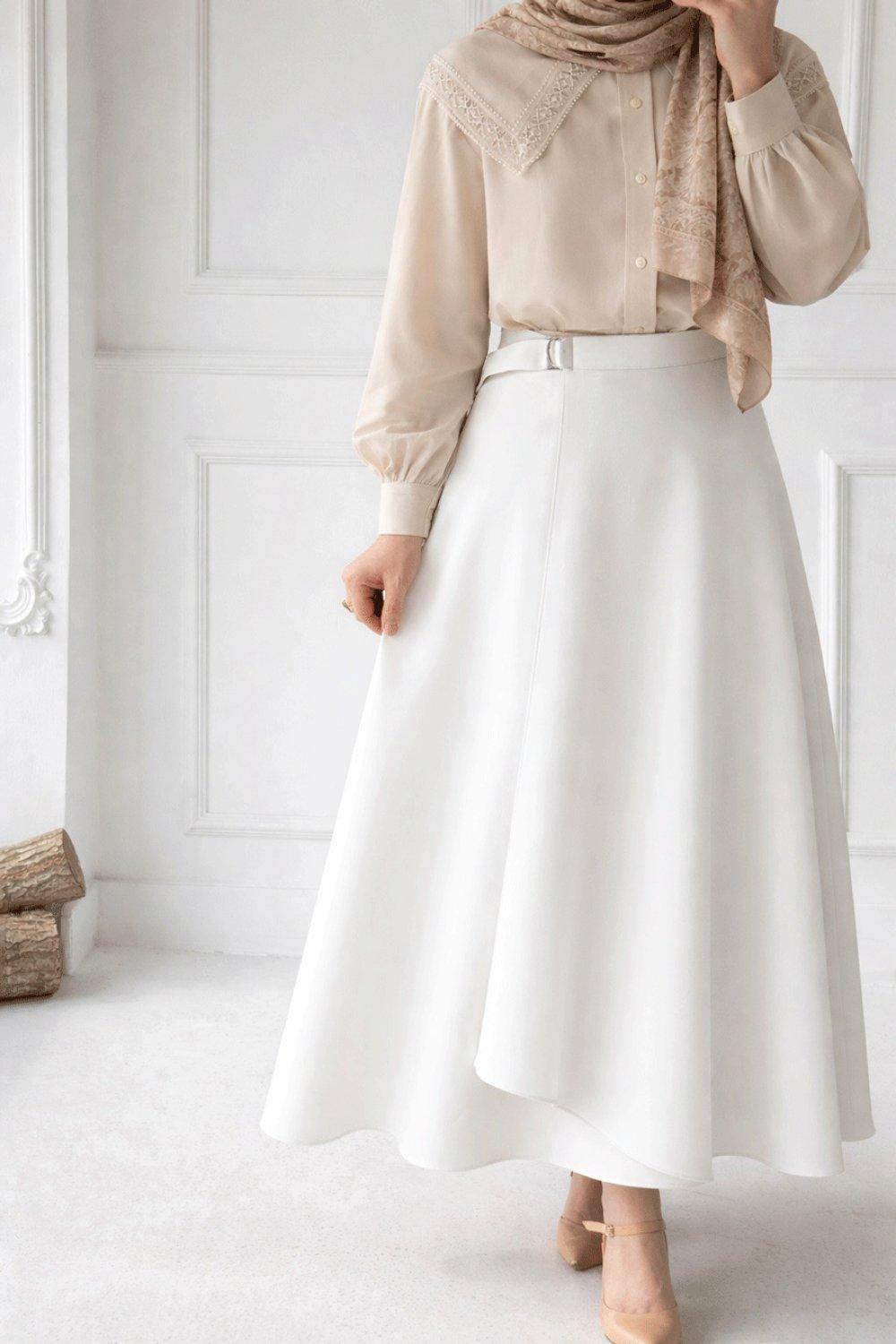 Krep Anvelop Kloş Etek - Beyaz