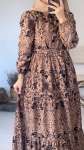 Önü Düğmeli Otantik Desen Elbise- Siyah