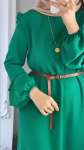 Fırfırlı Düğme Detay Elbise - Zümrüt
