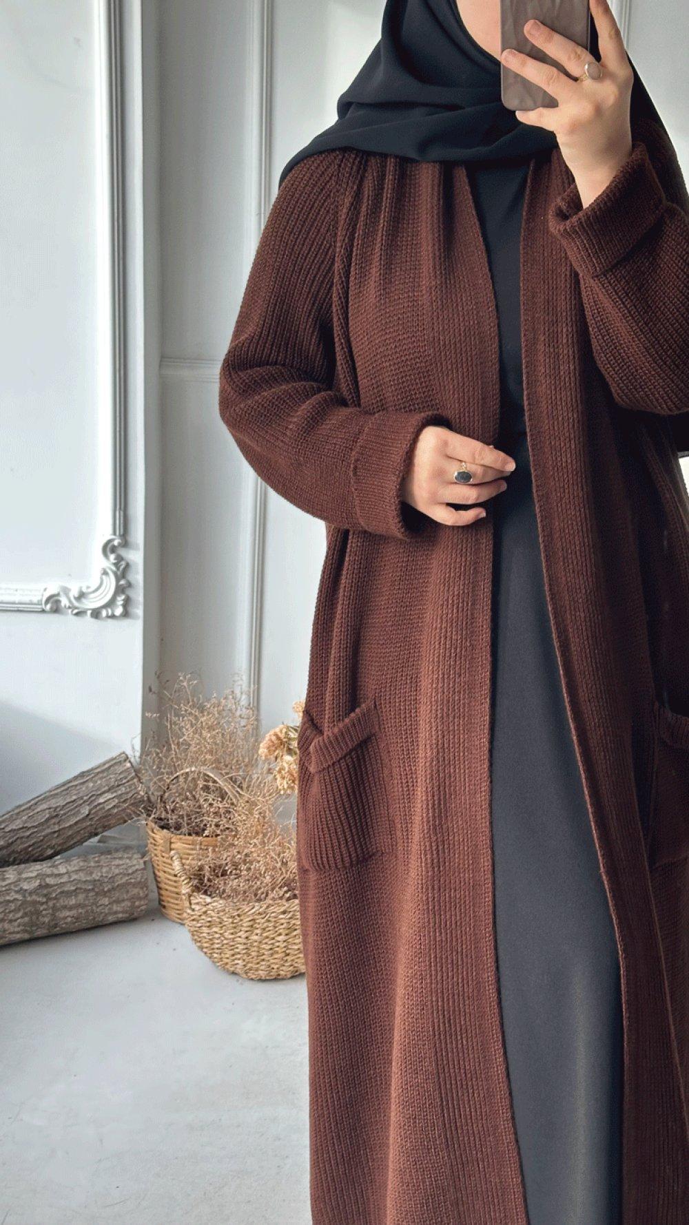 Şal Yaka Uzun Hırka - Kahverengi