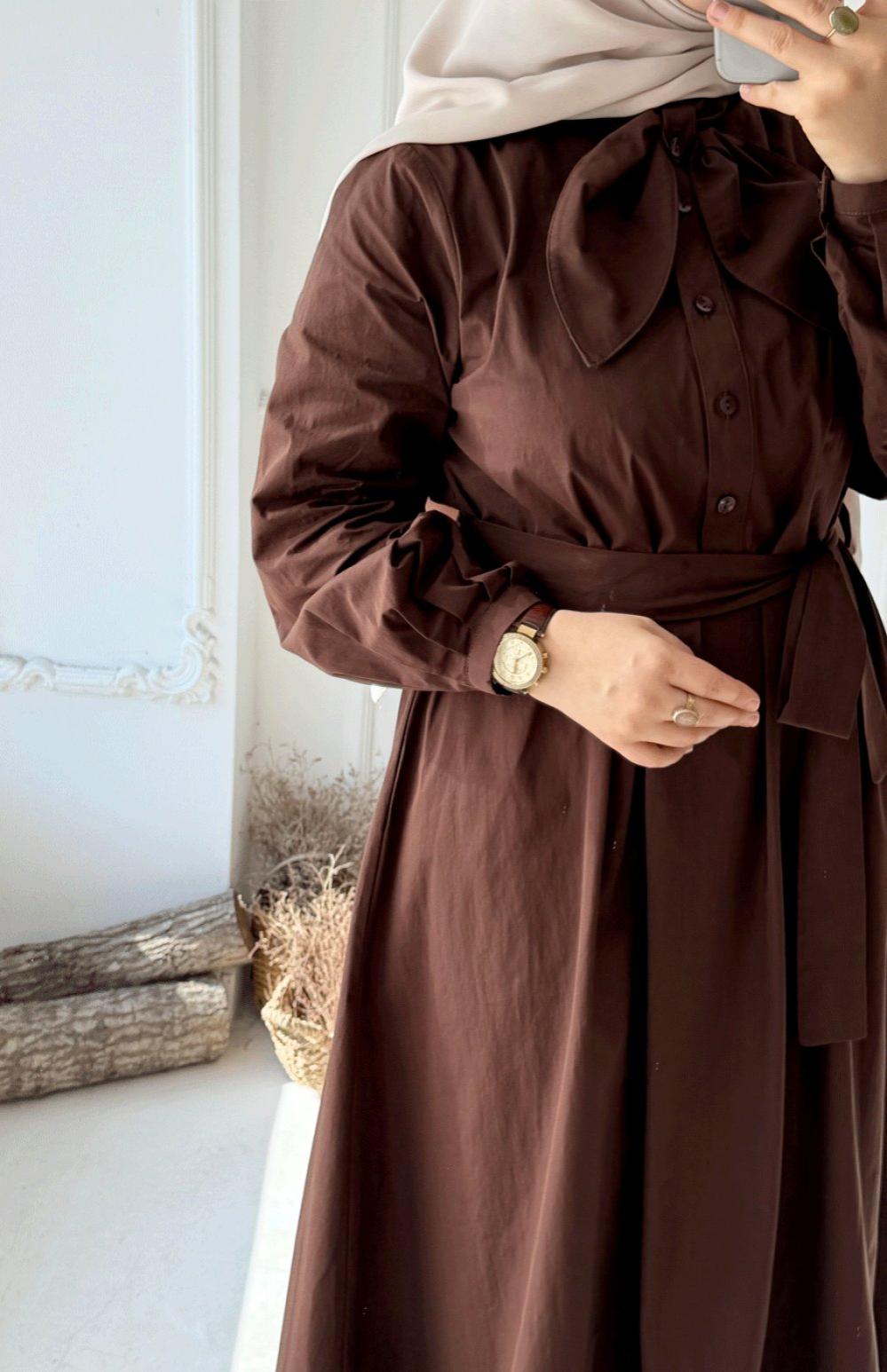 Yaka Detaylı Düğmeli Elbise - Kahverengi