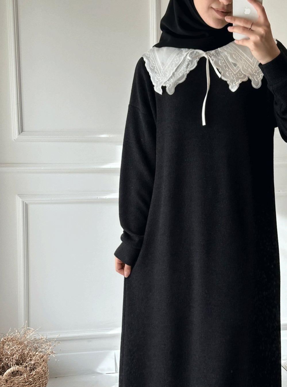 Yaka Detaylı Elbise - Siyah