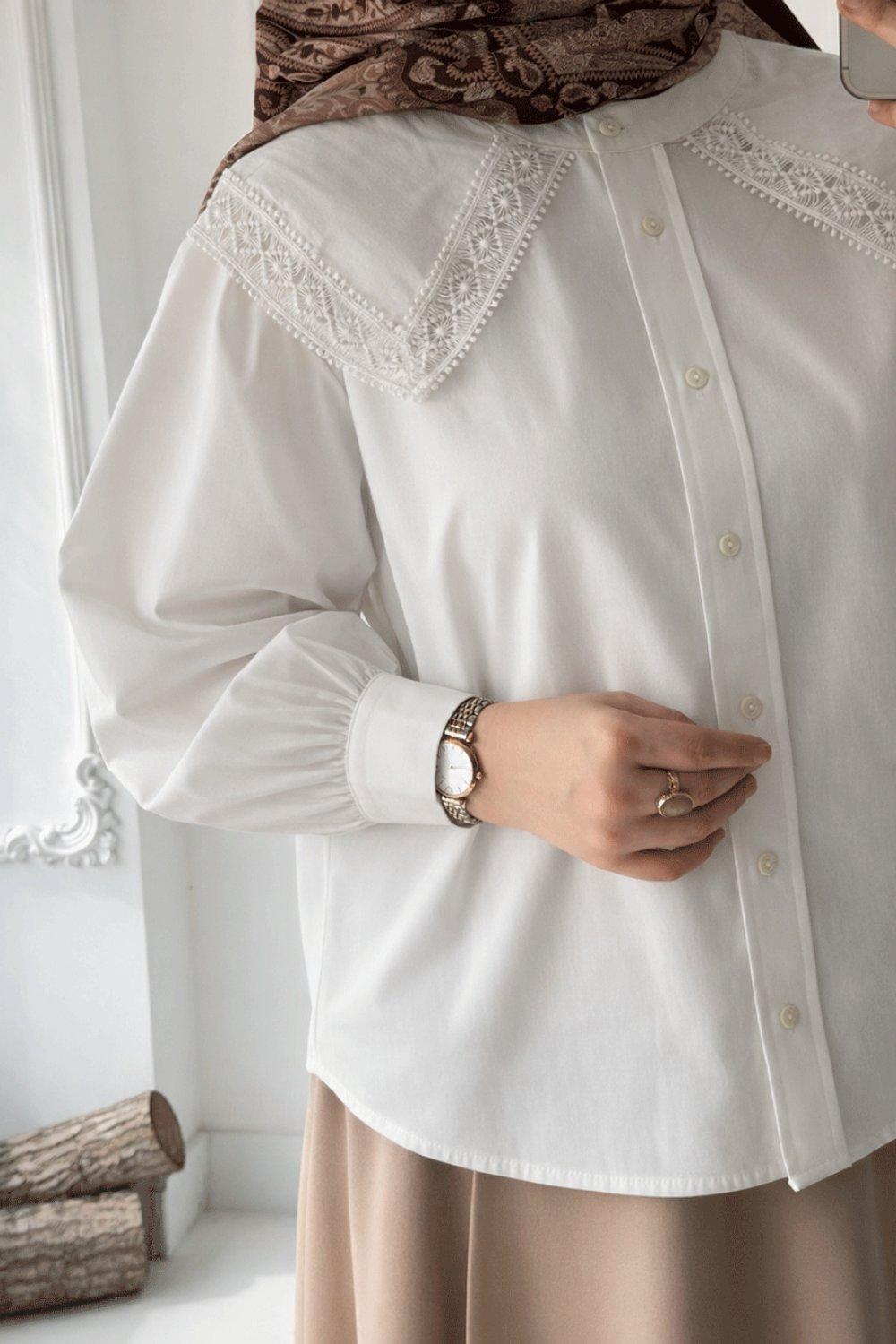 Yakalık Detaylı Gömlek - Beyaz